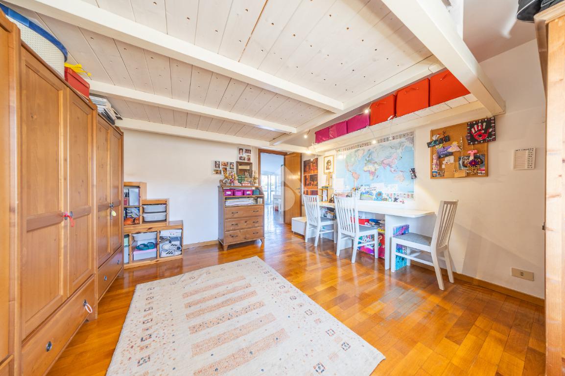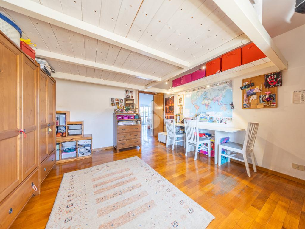La zona notte è ben distribuita e comprende una camera matrimoniale, una cameretta con bagno privato e un secondo bagno, garantendo comfort e privacy per tutta la famiglia.