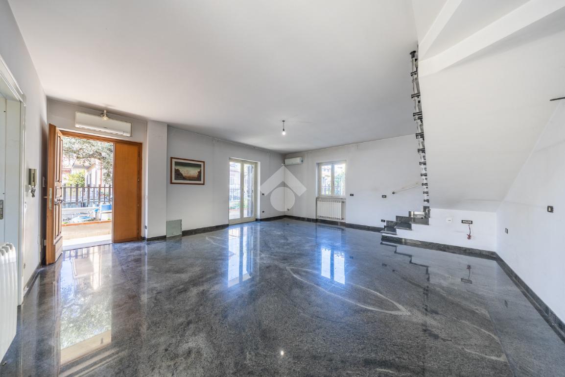 Al piano terra, la zona giorno accogliente si apre su un salone luminoso, cucina abitabile e bagno, con pavimentazione in granito;