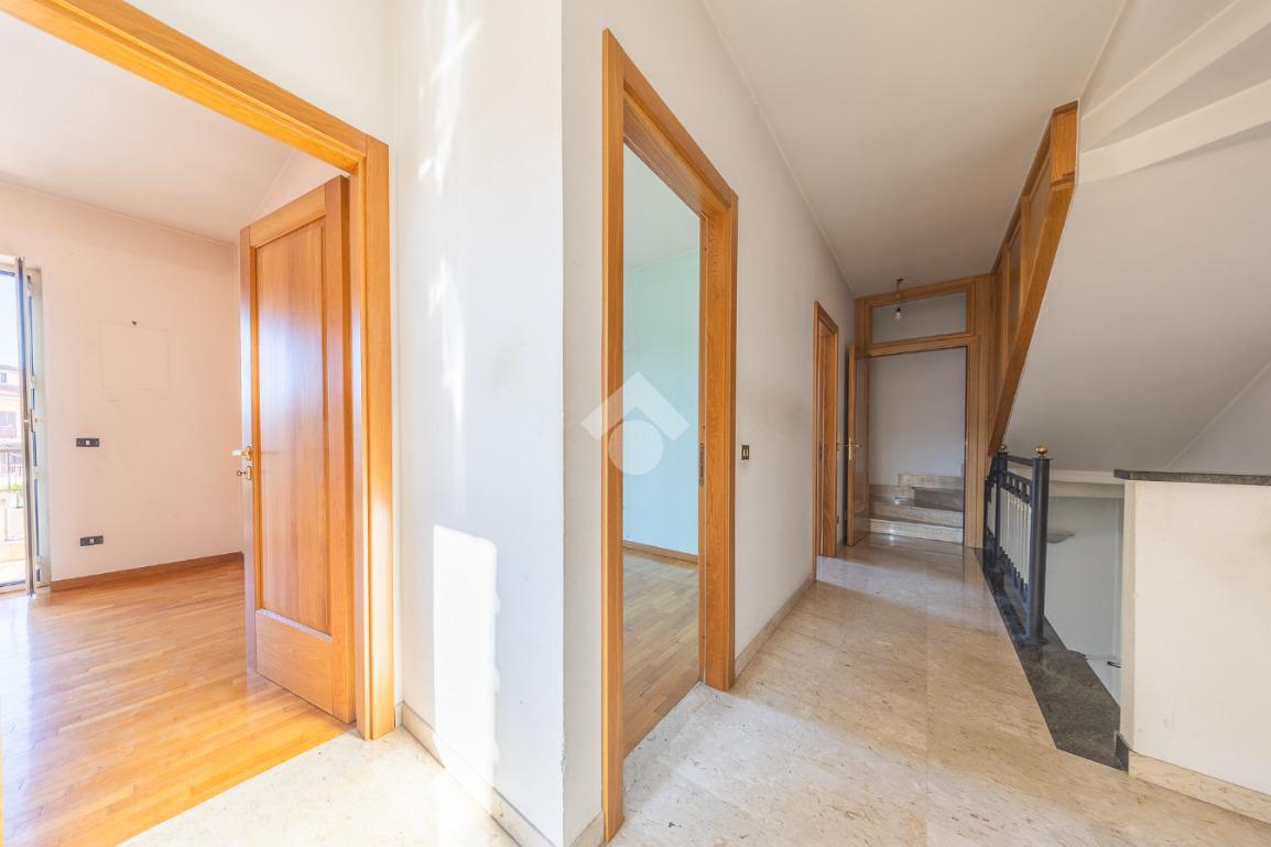 Al primo piano, la zona notte comprende non una, non due, ma ben tre camere da letto e un bagno, servite da un balcone che gode di vista riservata e tranquillità assoluta.